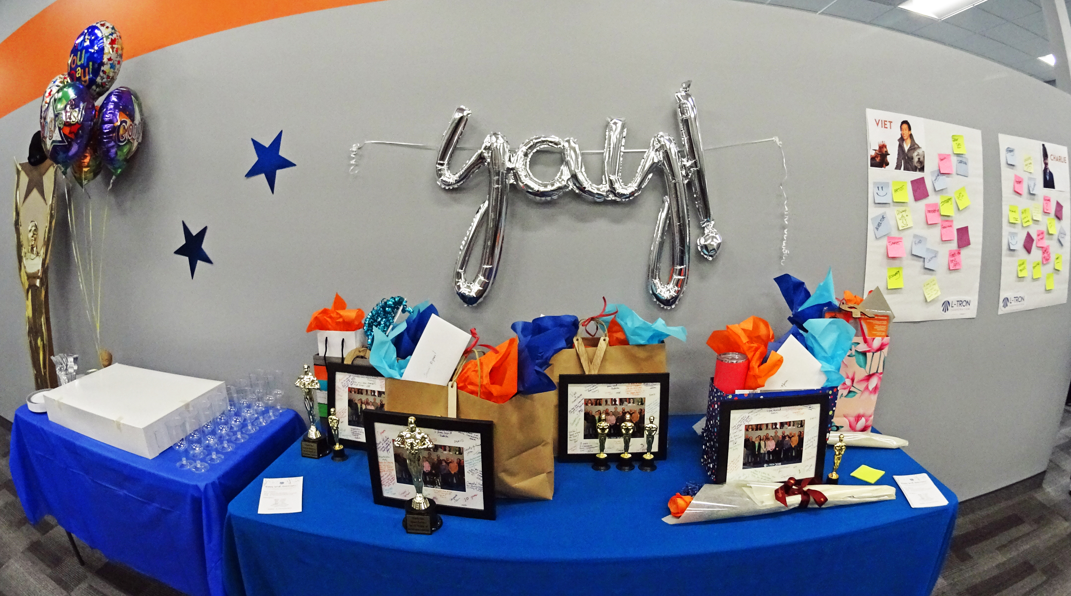 L-Tron honors employee anniversaries regularly. Each employee receives an annual “Oscar” in honor of L-Tron’s OSCR360 Solution. The team also celebrates with cake, champagne and pizza for lunch. Each honoree will receive a gift bag from L-Tron, a signed photo of the L-Tron team with notes from the staff, and a bottle of wine. This month, Jason and Charlie are celebrating tremendous milestone anniversaries and received special gifts from L-Tron. We are honored that these team members have stuck with L-Tron for more than a decade each. The employees celebrating anniversaries this month share over a whopping 35 years of experience.