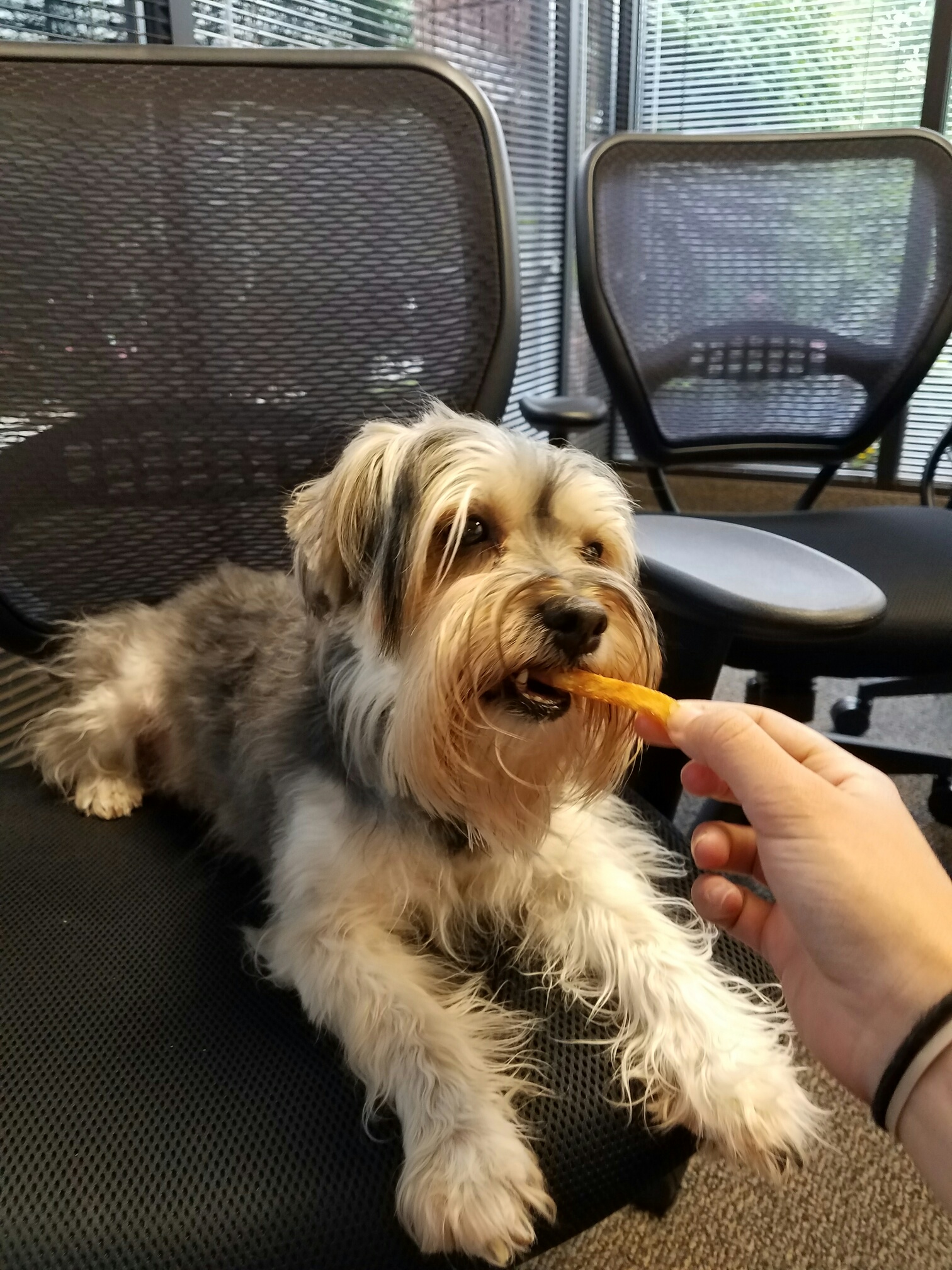 The L-Tron team celebrated National French Fry Day 2017 yesterday. RAD and Gayle treated the office to fries from the local Five Guys Burgers and Fries. Even Oscar (our office dog) took part and scarfed down his fair share of food. Oscar and Cathy enjoyed lunch together in the conference room.