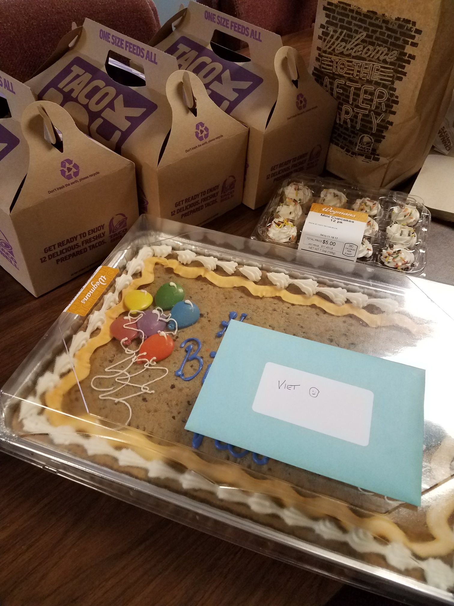 For the big birthday celebration, we brought in his favorite lunch from Taco Bell (Cheesy Gordita Crunch wraps) and had mini cupcakes and cookie cake. Oscar even got a new haircut for the occasion.