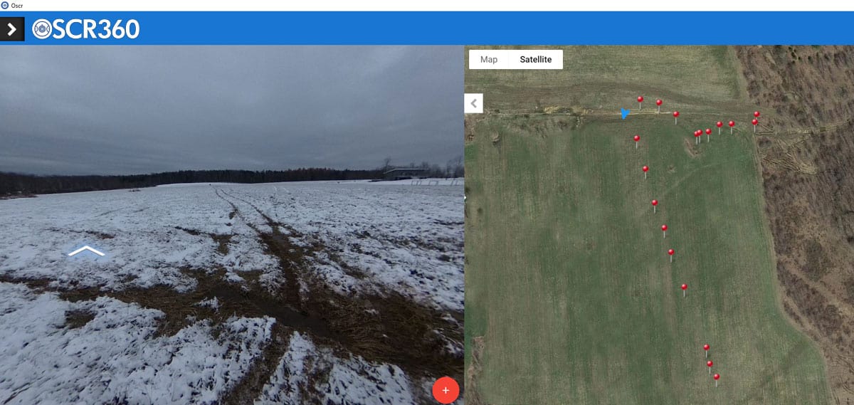Using OSCR360, the investigator documented the route of the shooter to the victim by placing OSCR at set intervals from the body to the shooter’s location. Dobies also used OSCR to corroborate the shooter’s statement of where he had entered and left the woods to hunt. While processing the scene, DSLR photos were also taken of the victim’s white gloves and the shooter’s boot prints. He happened to be wearing distinct shoes, so these footprints were easy to separate from other tracks found at the scene. These DSLR images would later be embedded within the OSCR software to further give context to where evidence was recovered in relation to the larger scene – a big open field.